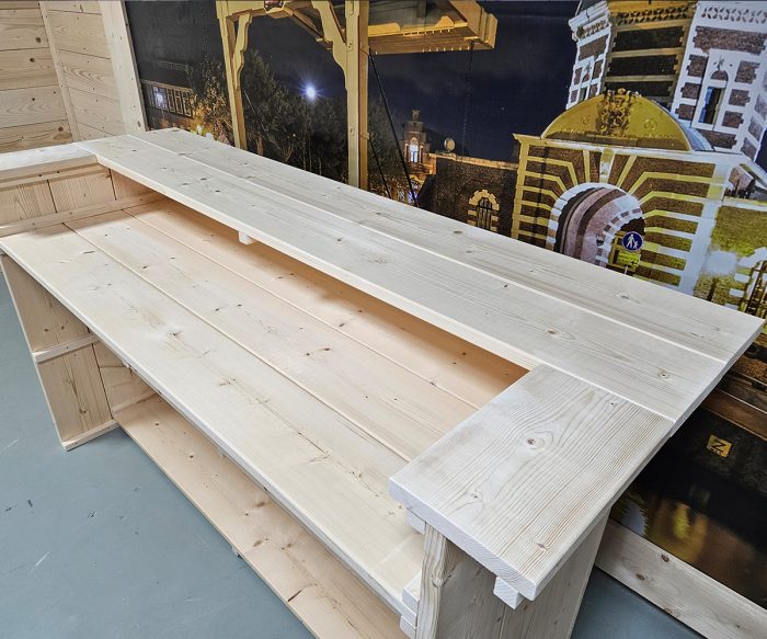 Indien u deze keuze op “Ja” zet, dan zorgen wij ervoor dat de steigerhouten bar in- en uit elkaar gehaald kan worden m.b.v. bouten en moeren.