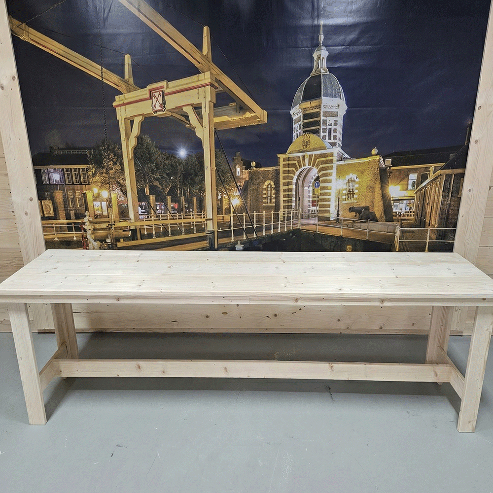 - Robuuste Bouw: Het stevige steigerhout zorgt voor een duurzame tafel die bestand is tegen dagelijks gebruik en jarenlang meegaat.