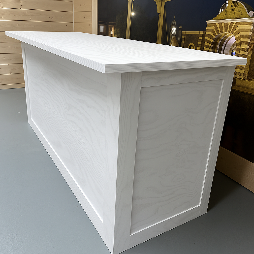 Met de Toonbank / Balie – Haarlem kies je voor een veelzijdig en representatief meubel dat breed inzetbaar is. Of je nu een winkeltoonbank, receptiebalie of houten balie zoekt, dit model biedt de perfecte combinatie van uitstraling en functionaliteit.