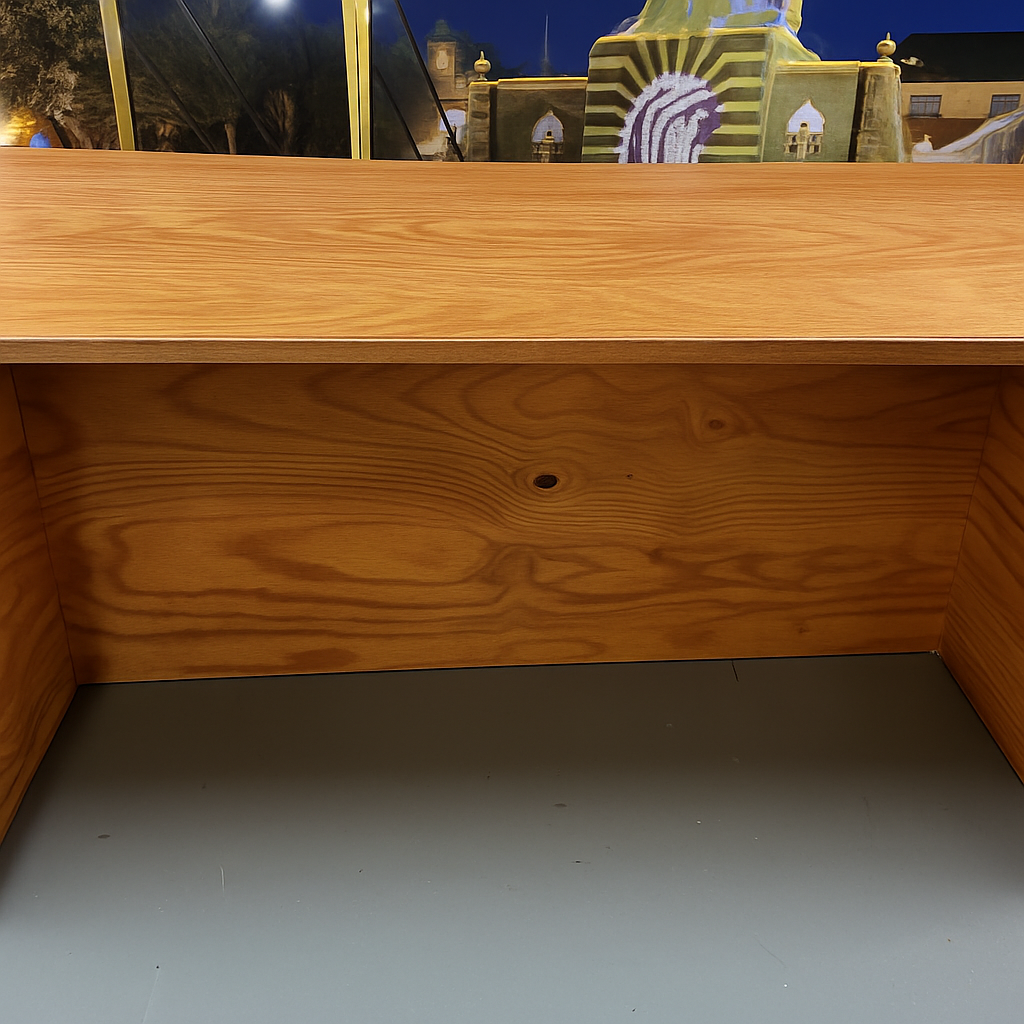 Deze winkel toonbank is gemaakt van stevig multiplex met houtlook-afwerking. Daardoor is de balie duurzaam, onderhoudsvriendelijk en geschikt voor dagelijks gebruik in drukke omgevingen. Achter de balie is voldoende werkruimte aanwezig, terwijl de voorzijde netjes en representatief oogt voor klanten en bezoekers.